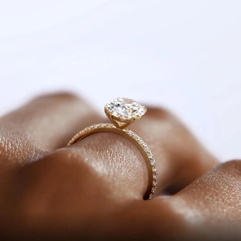 Elvoro Jewelry presents the Lumie'res Solitair - Gold Edition, a finely crafted 925 sterling silver ring designed for both men and women. This elegant piece features an 8x10mm oval-cut AAAAA+ zircon centerpiece set in a secure 4-prong setting, complemented by a halo of smaller zircons for added brilliance. Lightweight, ranging from 0.2g to 3g, it is available in US sizes 4 to 10, making it ideal for special occasions such as engagements, weddings, or anniversaries. Its classic design combines romantic charm with durable craftsmanship, perfect for a meaningful gift.